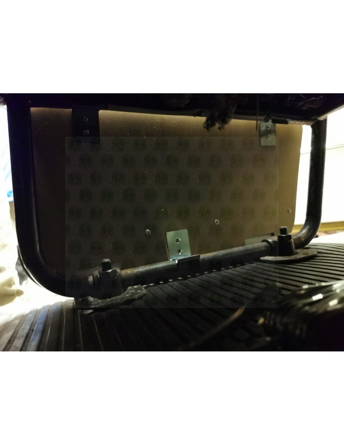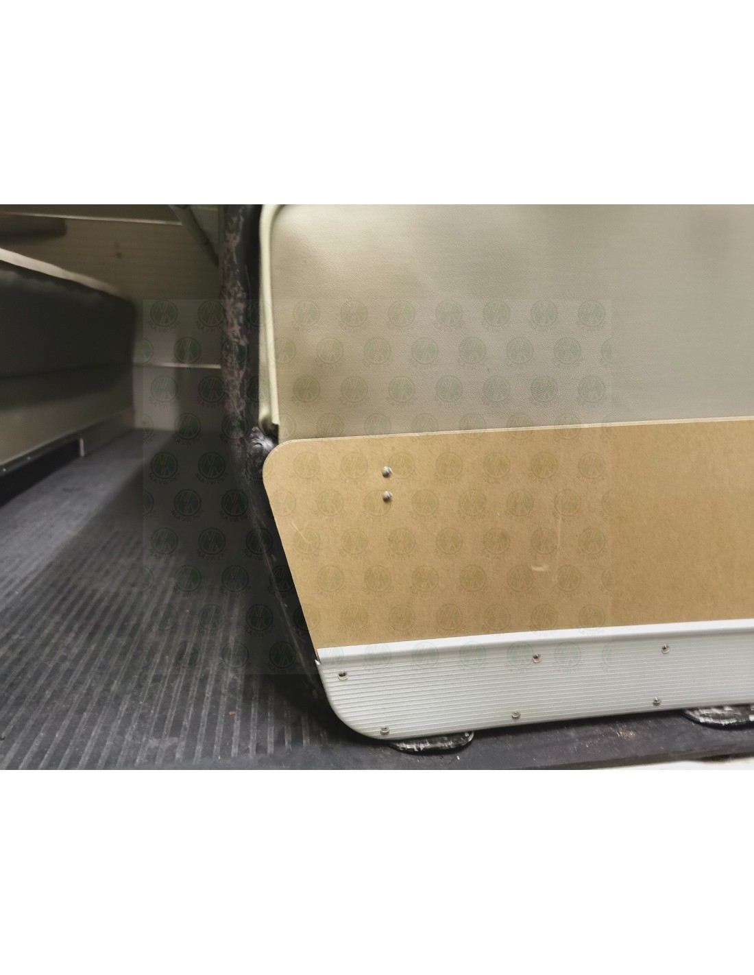 Strictly reproduced end panel / side panel with identical aluminium trim to the original and spring clips at the back for the middle seat in VW split Micro Bus 1950-1962. It is ready to fit your own vinyl on to match the colour of your camper.