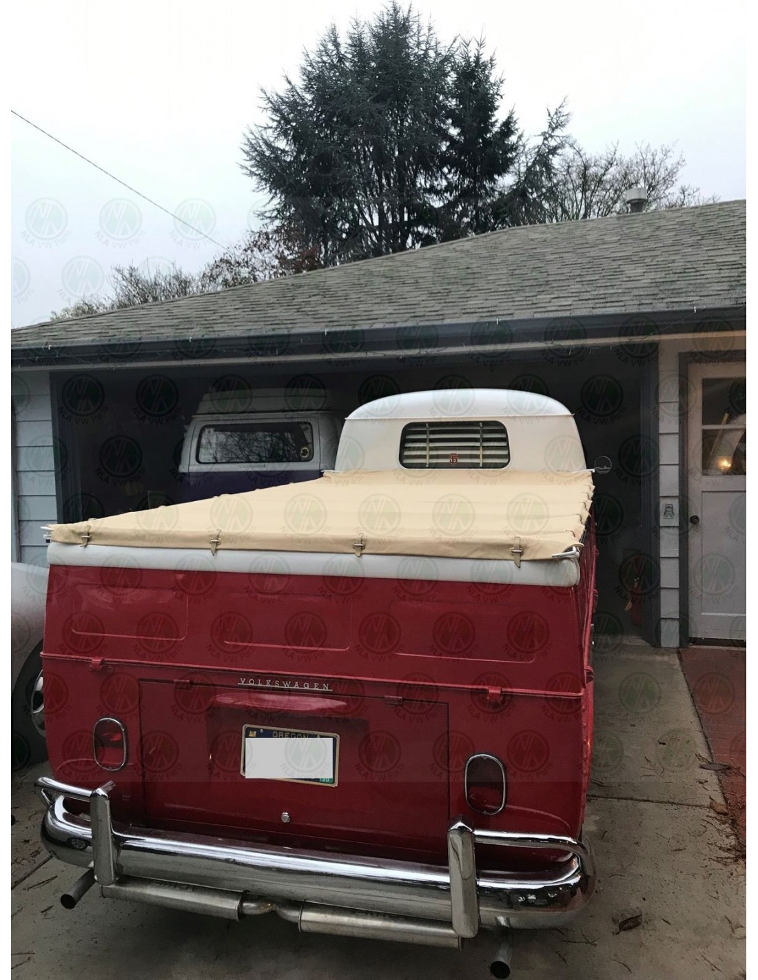 This canvas fits all VW T2 Splits Single cab pick ups with original dropsides nicely.