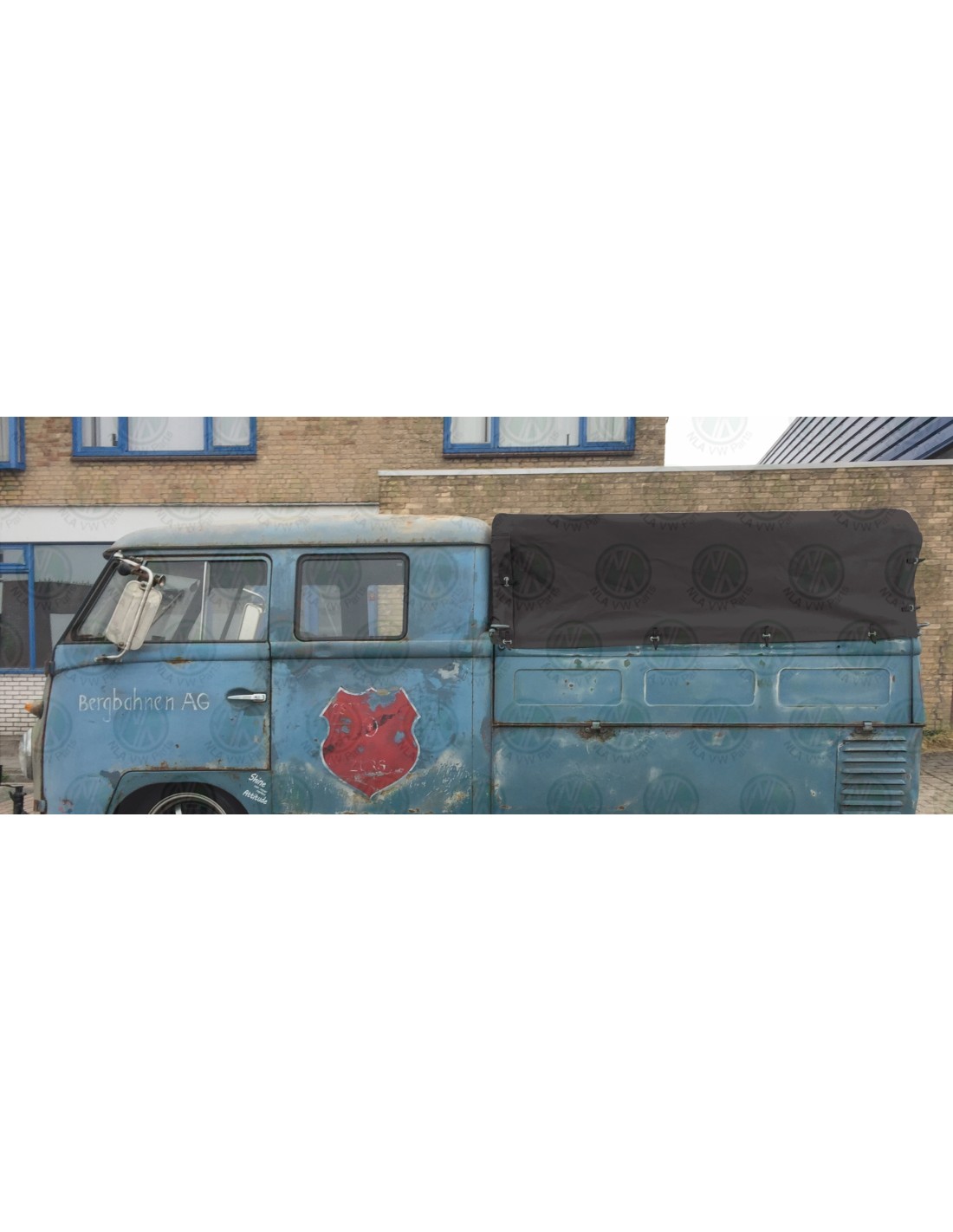 This canvas fits all VW T2 Split Double/Crew Cab pick ups with original dropgates and original flush-height hoops (as well as our C9576F NLA hoops) nicely.